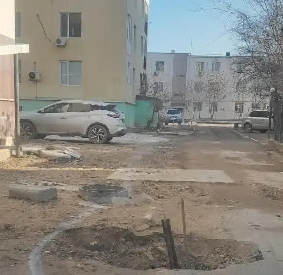 Жители Актау выразили недовольство состоянием дороги между домами №24, 18, 22, 20Б и 21. Дорожное покрытие было демонтировано в сентябре 2025 года в ходе работ по реконструкции водопроводных сетей.
