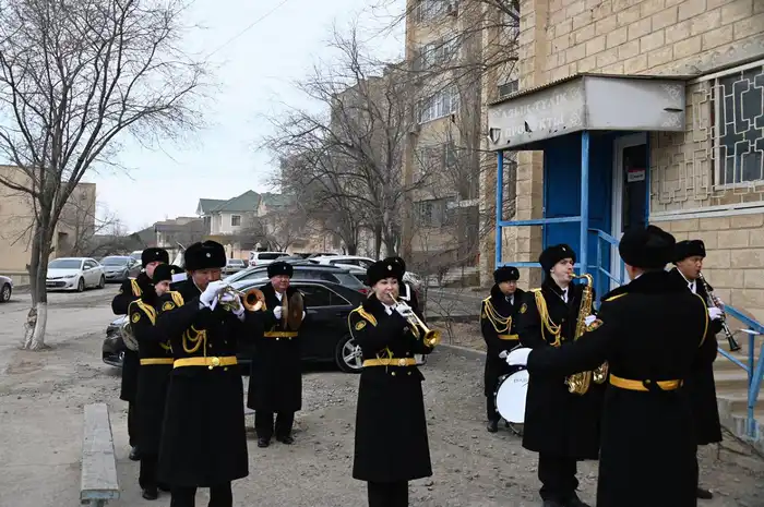 Как живой свидетель героической истории нашего народа Вы являетесь воплощением мужества, чести и несгибаемой силы духа. Гордимся возможностью лично выразить Вам слова глубокой благодарности и низко склоняем головы перед подвигом поколения победителей, – сказал командир войсковой части 29011 капитан 1 ранга Есенгали Байботаев.