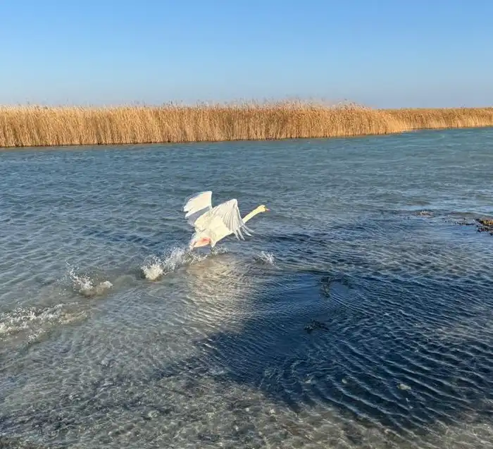 В Мангистау спасён ослабленный лебедь: сотрудники инспекции вернули его в естественную среду обитания