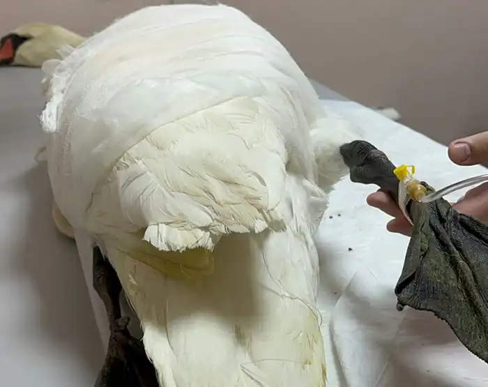 Лебедь с переломом крыла: ветеринары спасают чудо природы
