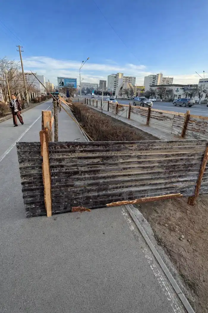 В 10 микрорайоне Актау возникли проблемы с пешеходной дорожкой, на которой установлено ограждение, мешающее проходу жителей. Горожане выразили беспокойство, что конструкция занимает часть широкой тротуарной зоны у дома №10, где ежедневно проходят люди, включая детей и пожилых.