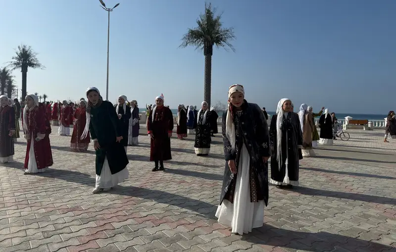 В прошлом году в Актау был установлен рекорд Гиннесса, когда более 5000 человек вышли на набережную в казахских национальных костюмах. Традиция продолжилась, и в этом году участники вновь пришли на площадь в национальной одежде, отражая свою культуру, традиции и историю.