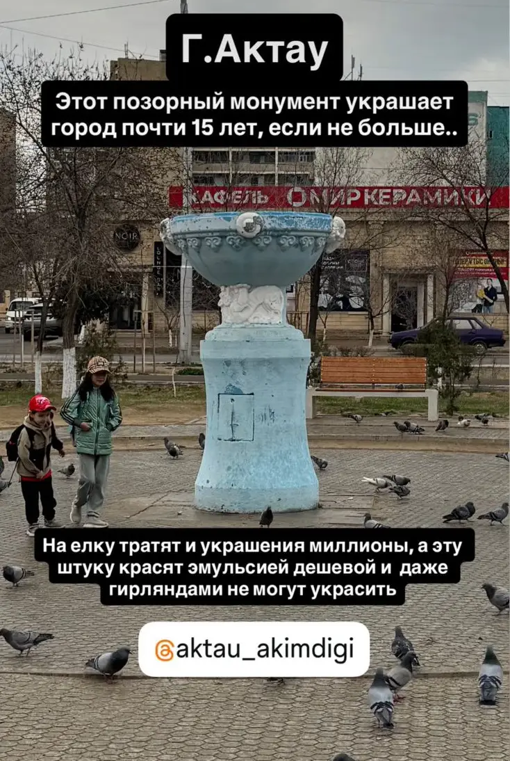 В социальных сетях жители Актау обратились к властям с инициативой заменить старую малую архитектурную форму «Чаша» в 12 микрорайоне на памятник голубям.