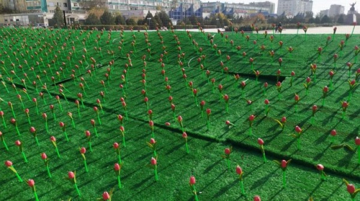 Пластиковые тюльпаны за 15 миллионов тенге в Актау начали разваливаться