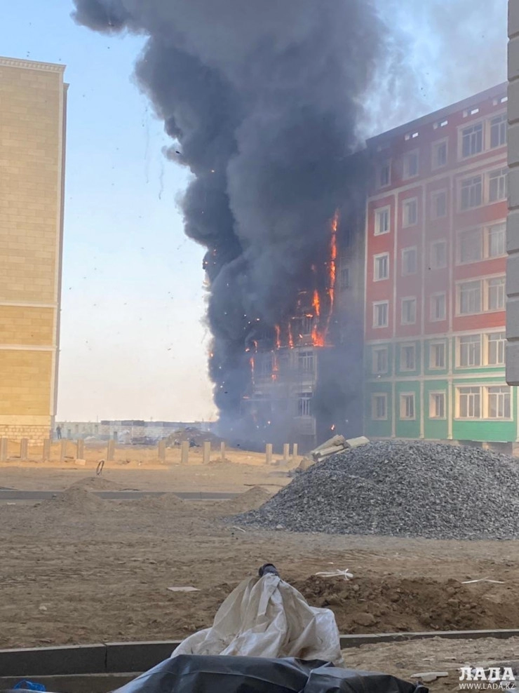 Новостройку охватило пламенем в Актау