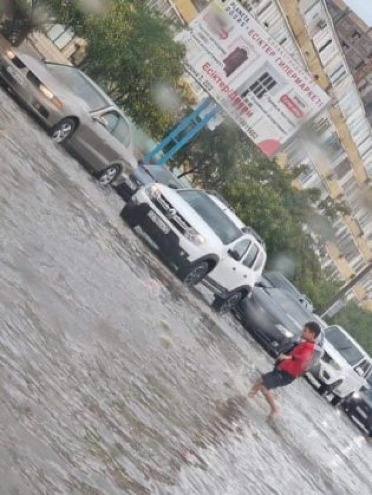 Инцидент произошел сегодня, 28 июля, на дороге между 12-м и 16-м микрорайонами, напротив ТРК "Актау". Как пояснила автор снимков, ребенок потерял обувь, когда переходил улицу. Дорогу по щиколотку затопило после дождя.
