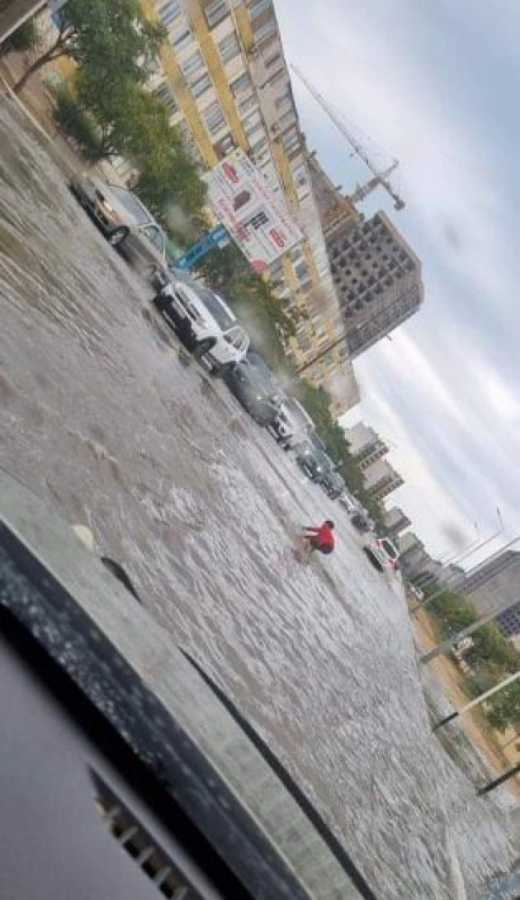 Водители терпеливо ждали мальчика, потерявшего обувь на затопленной улице в Актау
