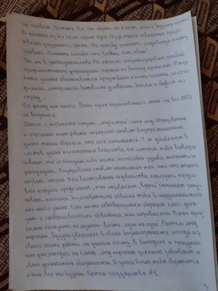 "В учреждении наглым образом нарушают права пациентов, моральные и этические нормы, и банальная человечность чужда административному составу, начиная от директора и заканчивая уборщицей. То, что нас игнорируют, издеваются, - все равно, что ничего не сказать.