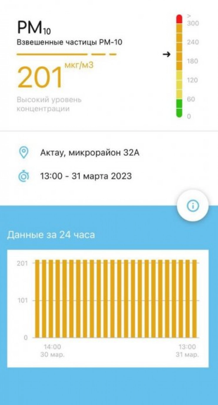 Однако, согласно карте загрязнения воздуха airkaz.org, превышение нормы вредных веществ PM2.5 зафиксировано в Жанаозене, Курыке и Шетпе.