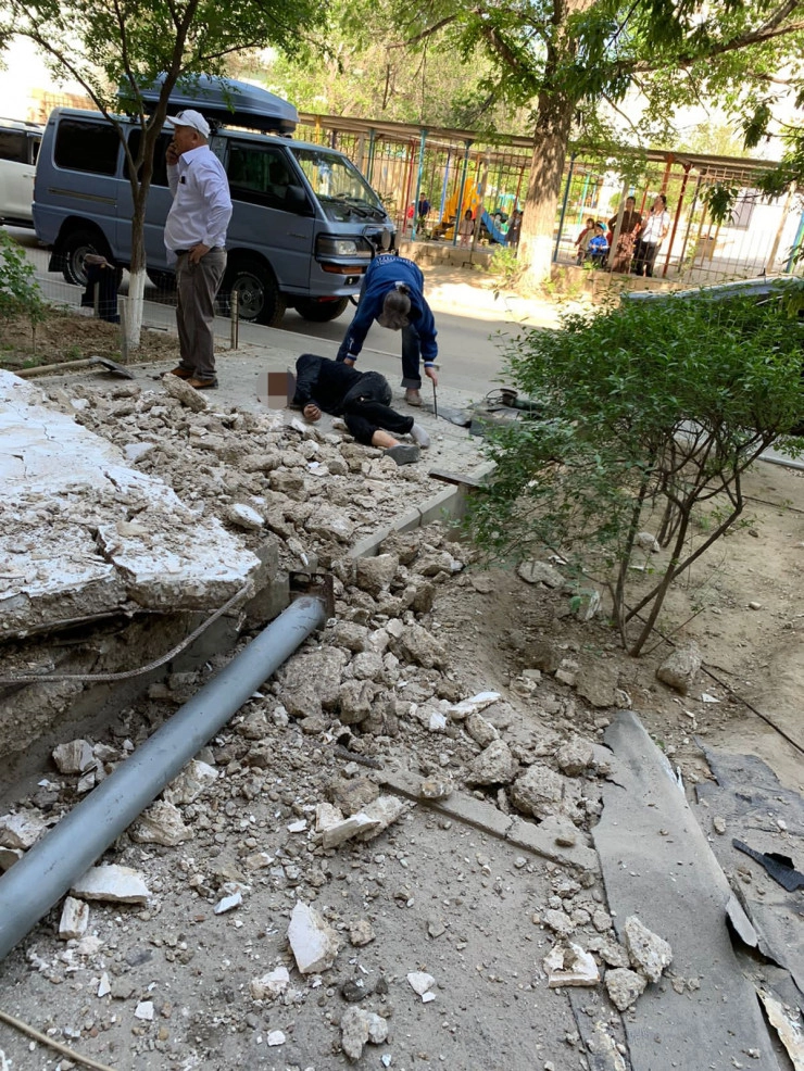 Козырек подъезда рухнул на людей в Актау: есть погибший