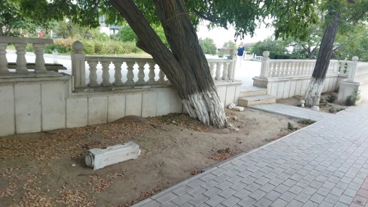 Вандалы повредили балюстраду на бульваре Победы в Актау