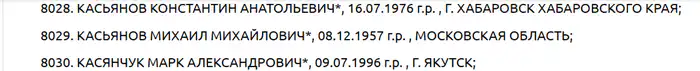 Данные Михаила Касьянова в базе Росфинмониторинга