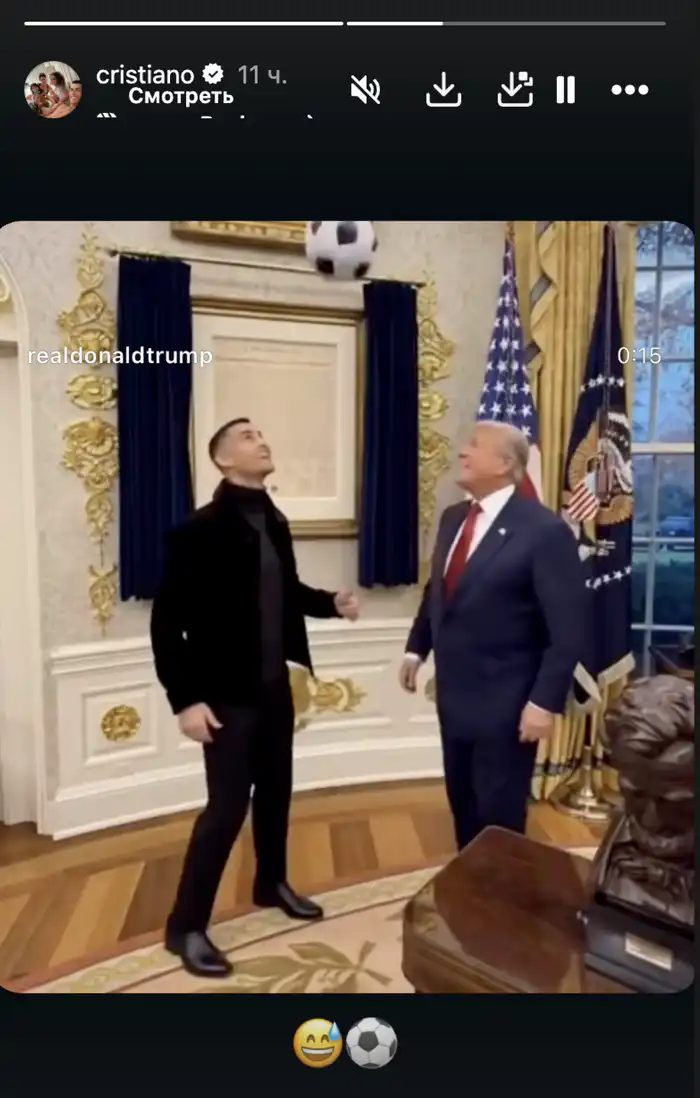 Президент США Дональд Трамп опубликовал видео, в котором он играет в футбол со звездным нападающим сборной Португалии и клуба "Аль-Наср" Криштиану Роналду. Это событие привлекло значительное внимание в социальных сетях.