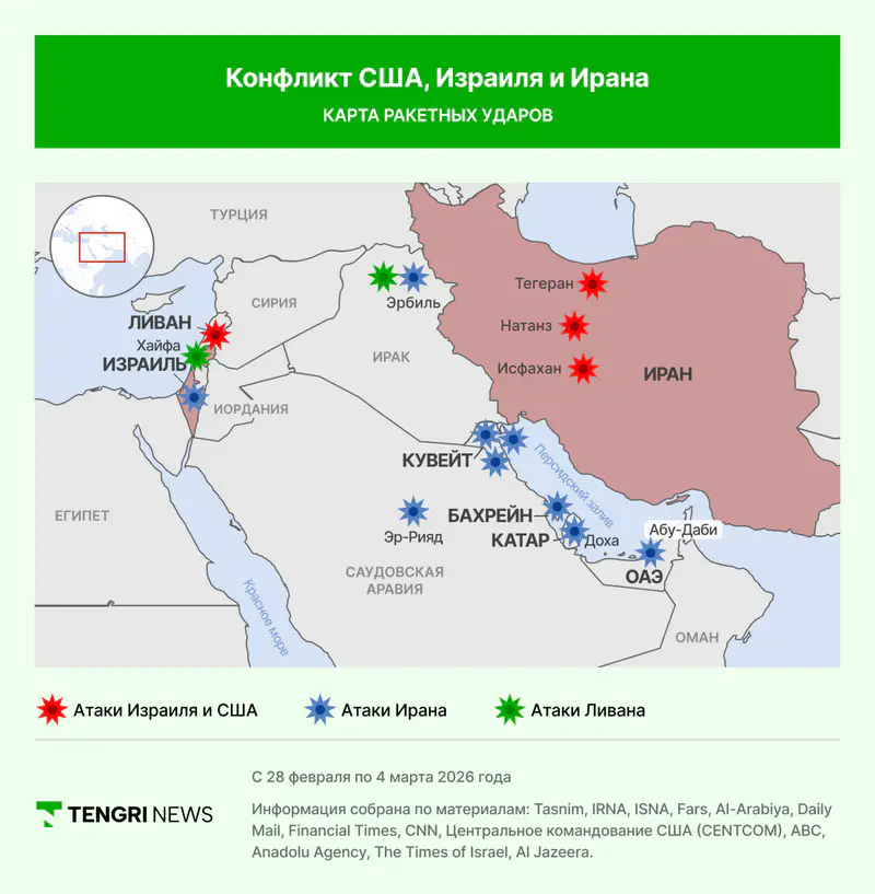 2 марта в МИД Казахстана сделали заявление о ситуации, выразив сожаление в связи с ударами по гражданским объектам и гибелью мирных жителей.