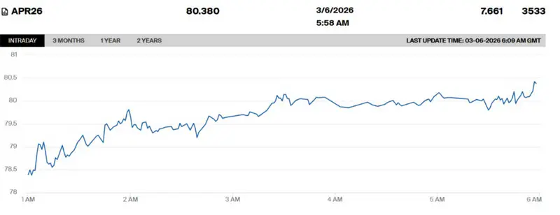 Стоимость апрельских фьючерсов на нефть марки WTI росла на 7,66 процента - до 80,38 доллара за баррель.