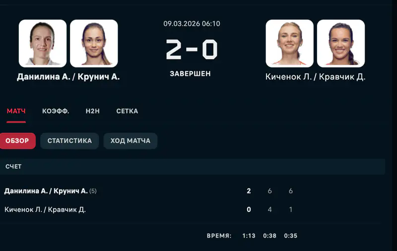 Следующие соперницы казахстанско-сербского дуэта определятся в матче между Хейли Баптист (США) и Еленой Остапенко (Латвия) против Мирры Андреевой (Россия) и Викторией Мбоко (Канада).