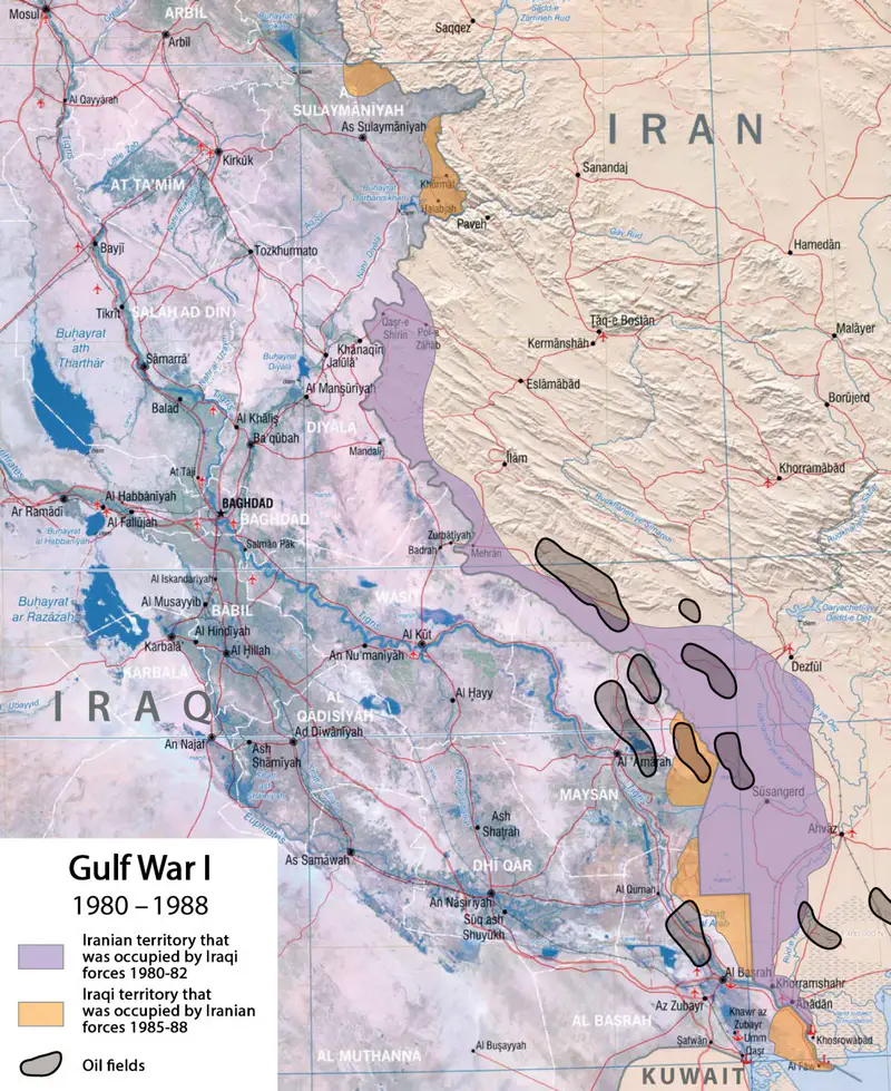 В сентябре 1980 года Ирак начал войну против Ирана. Иракский президент Саддам Хусейн рассчитывал воспользоваться некоторой дезорганизацией иранской армии после революции и захватить спорные территории. Здесь надо отметить, что основные нефтедобывающие районы Ирана расположены в провинции Хузестан, совсем недалеко от иракской границы, где большая часть населения — этнические арабы.